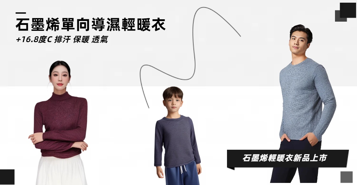 石墨烯單向導濕輕暖衣男款圓領安摩兒