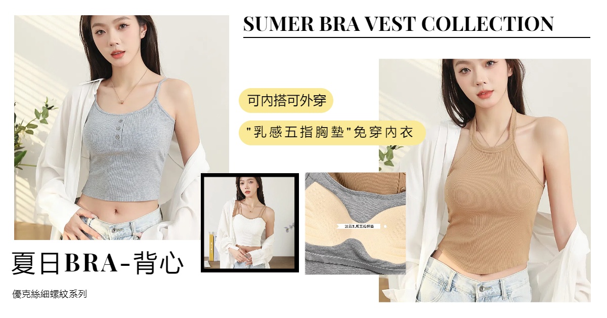 拼接螺紋罩杯一體細肩bra內衣安摩兒