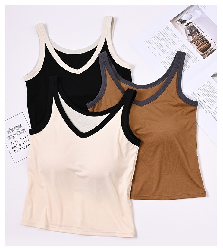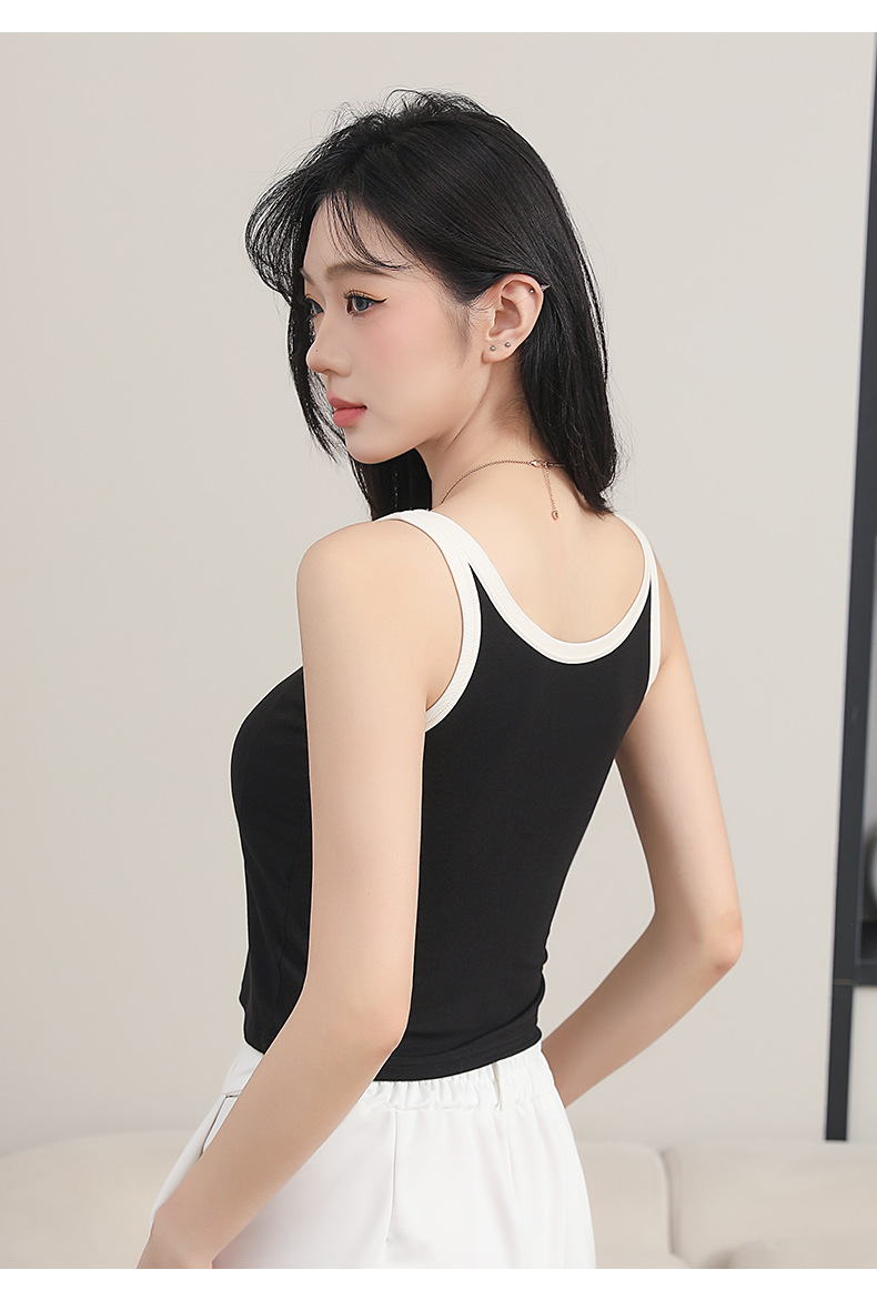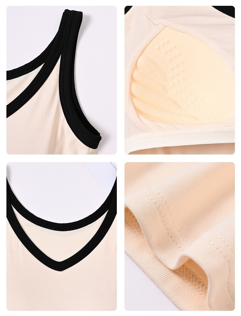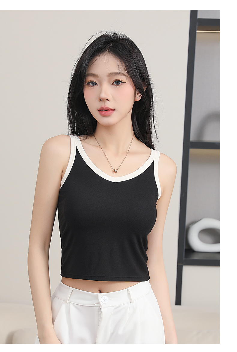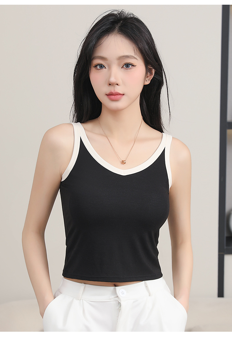 拼接撞色V领短款bra背心