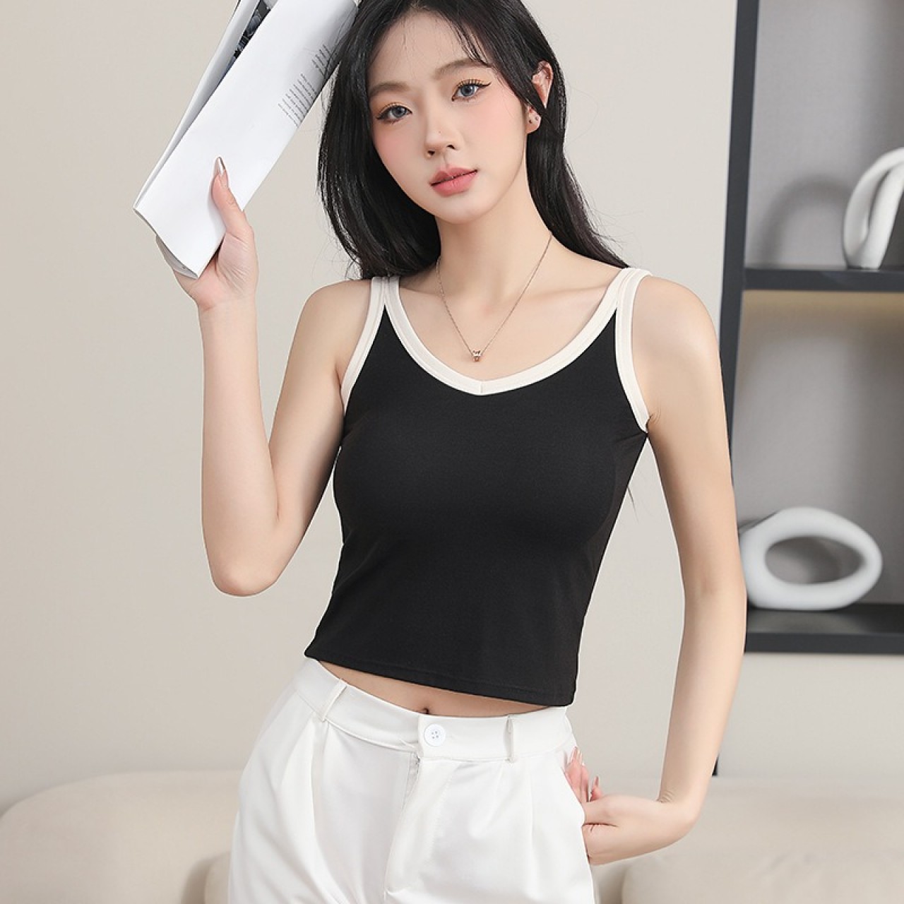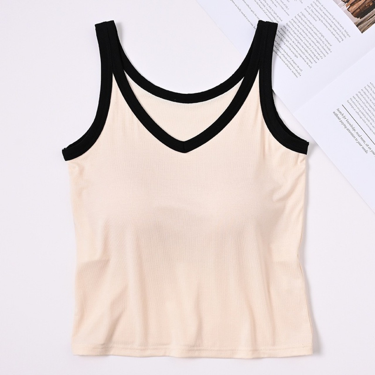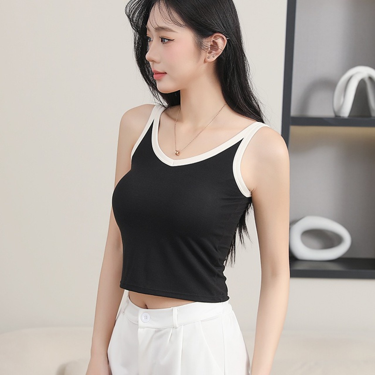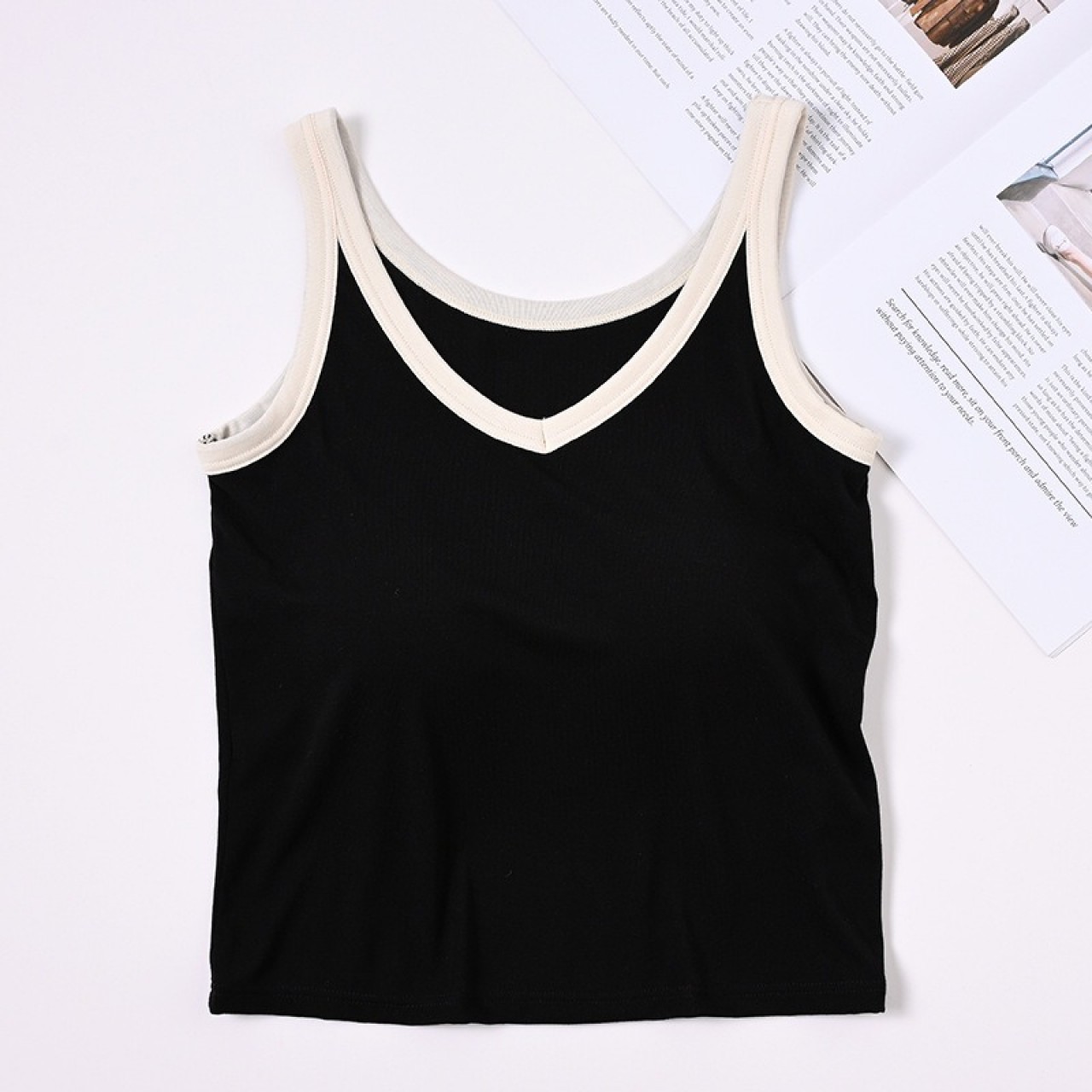 拼接撞色V领短款bra背心