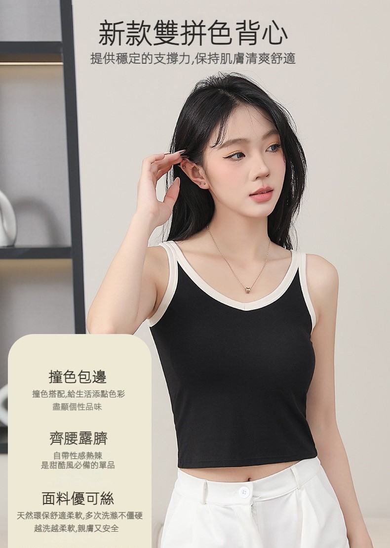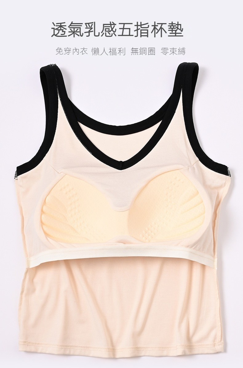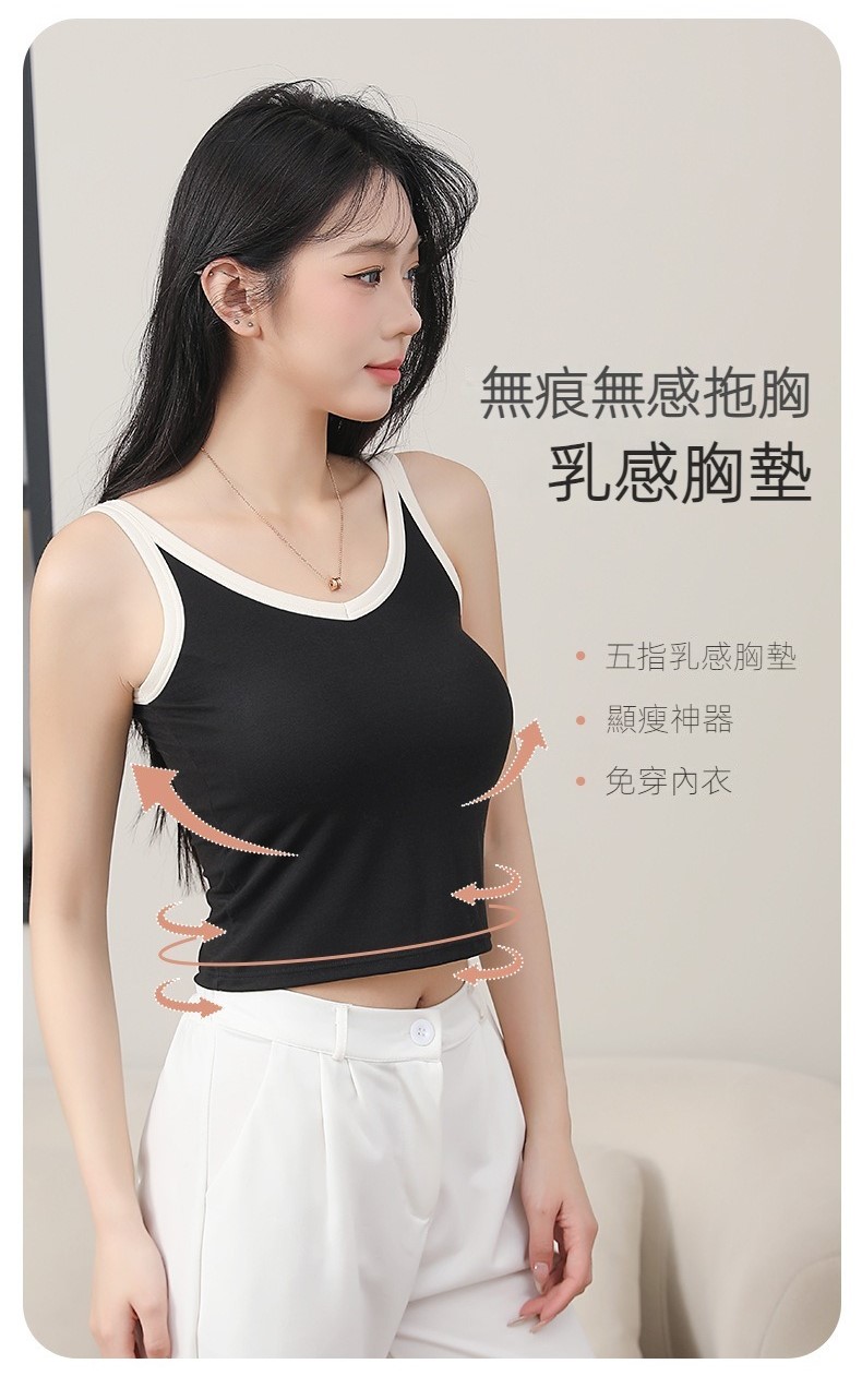 親膚又安全,乳感胸墊,免穿內衣,懶人福利,雙拼線條立體,凸顯身材,可外穿。