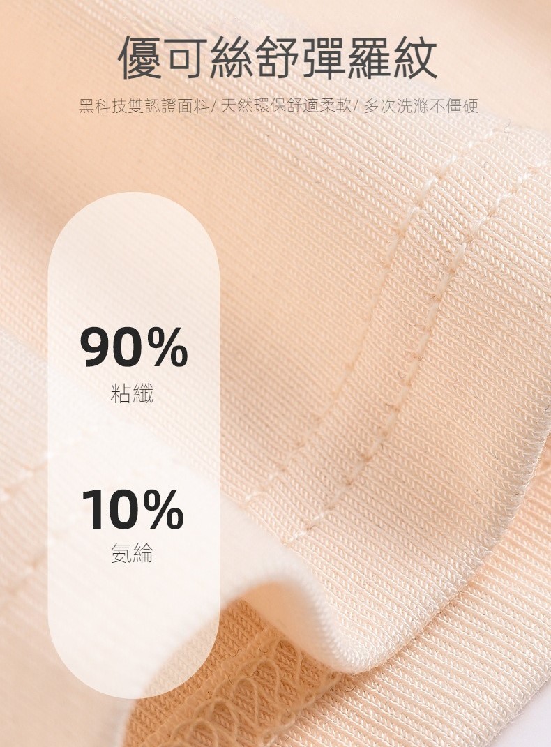 布料優可絲,黑科技雙認證布料,天然環保舒適柔軟,多次洗滌不僵硬,越洗越柔。