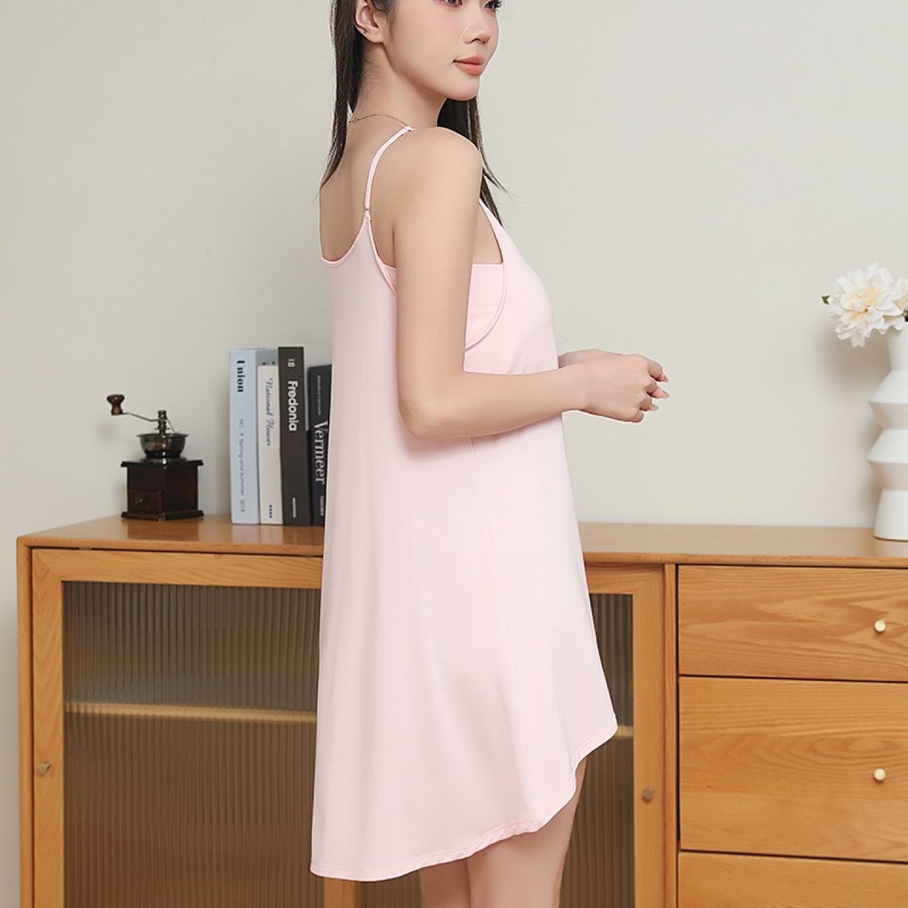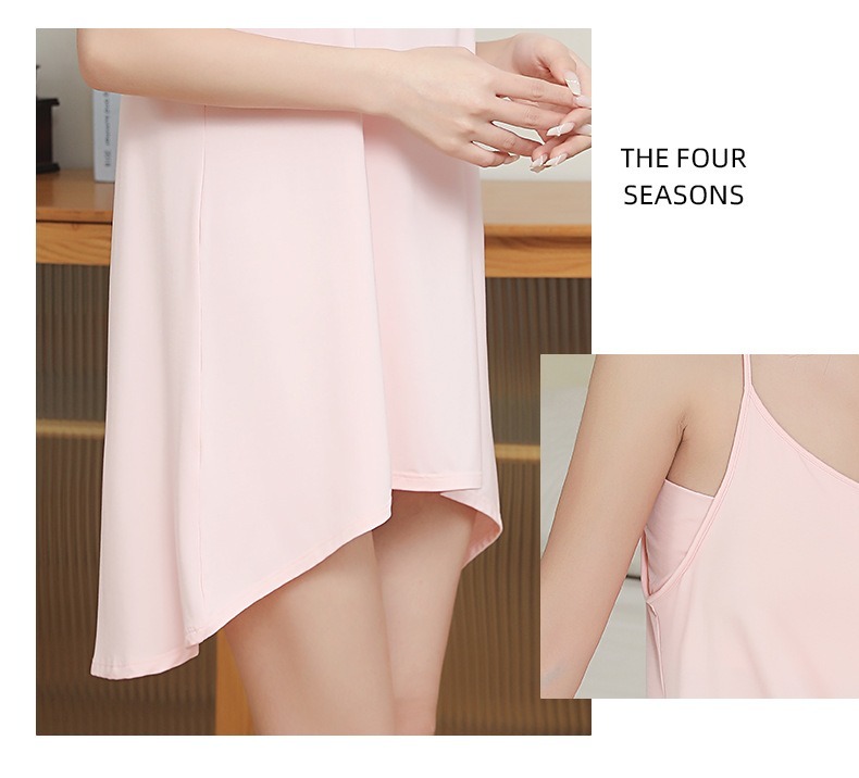 高紗支蘭精莫代爾布料,手感如絲綢般細膩柔滑,輕盈飄逸,性價比極高。 自備胸墊,免穿胸罩,防凸點設計,居家出門不用遮掩,無需換裝,幸福感驟增。 前短後長晚禮服設計,拉長腿型。