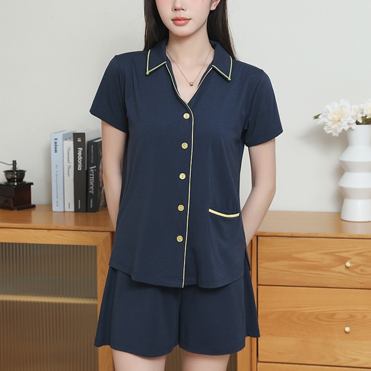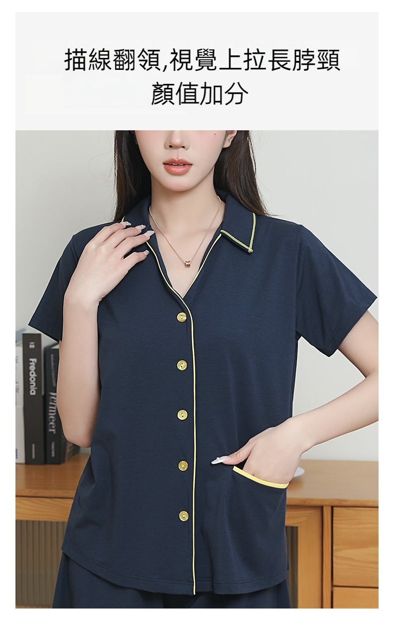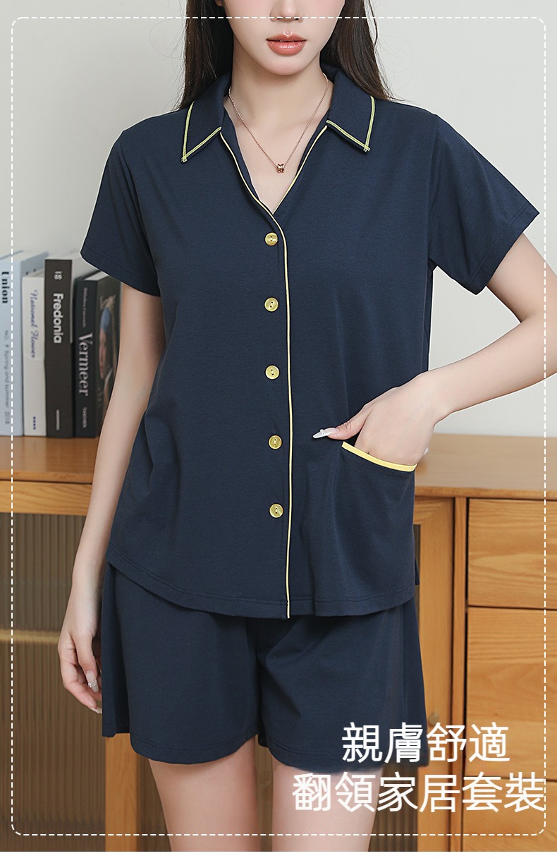標籤: 翻領, 三分袖, 套裝, 睡衣, 家居服, 棉質, 莫代爾, 安摩兒