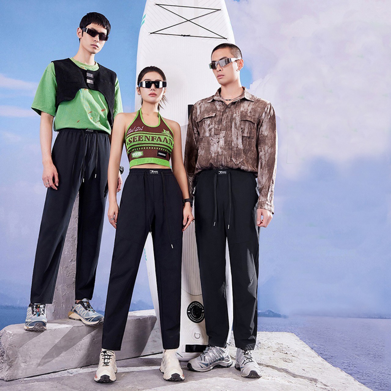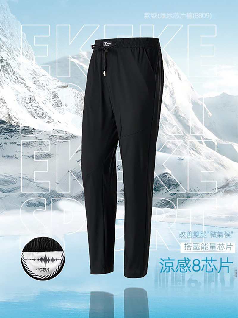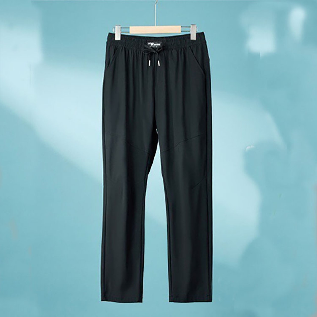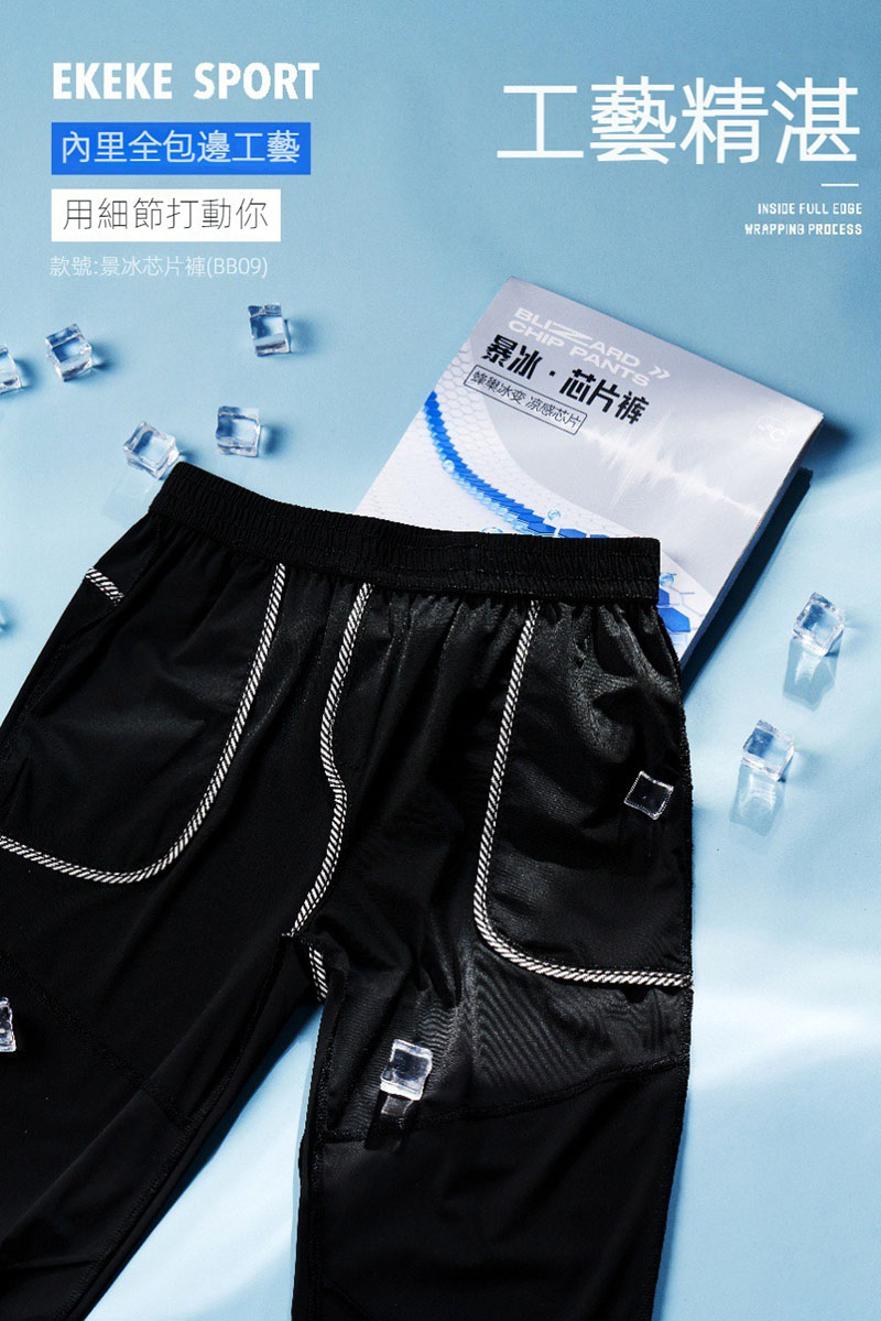 冰絲裸感黑色休閒防曬晶片褲直筒情侶涼感褲