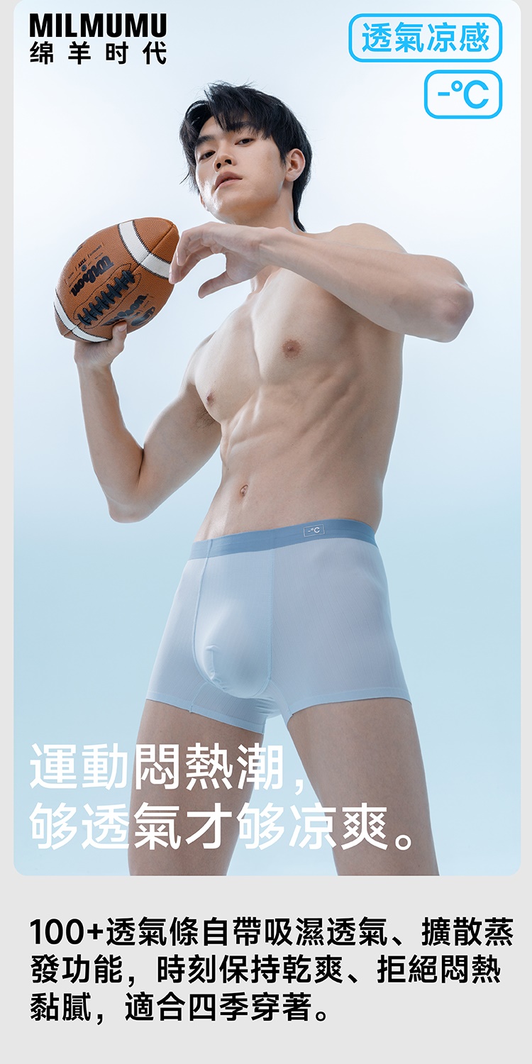 MILMUMU男款醫丸抗菌運動冰絲四角內褲