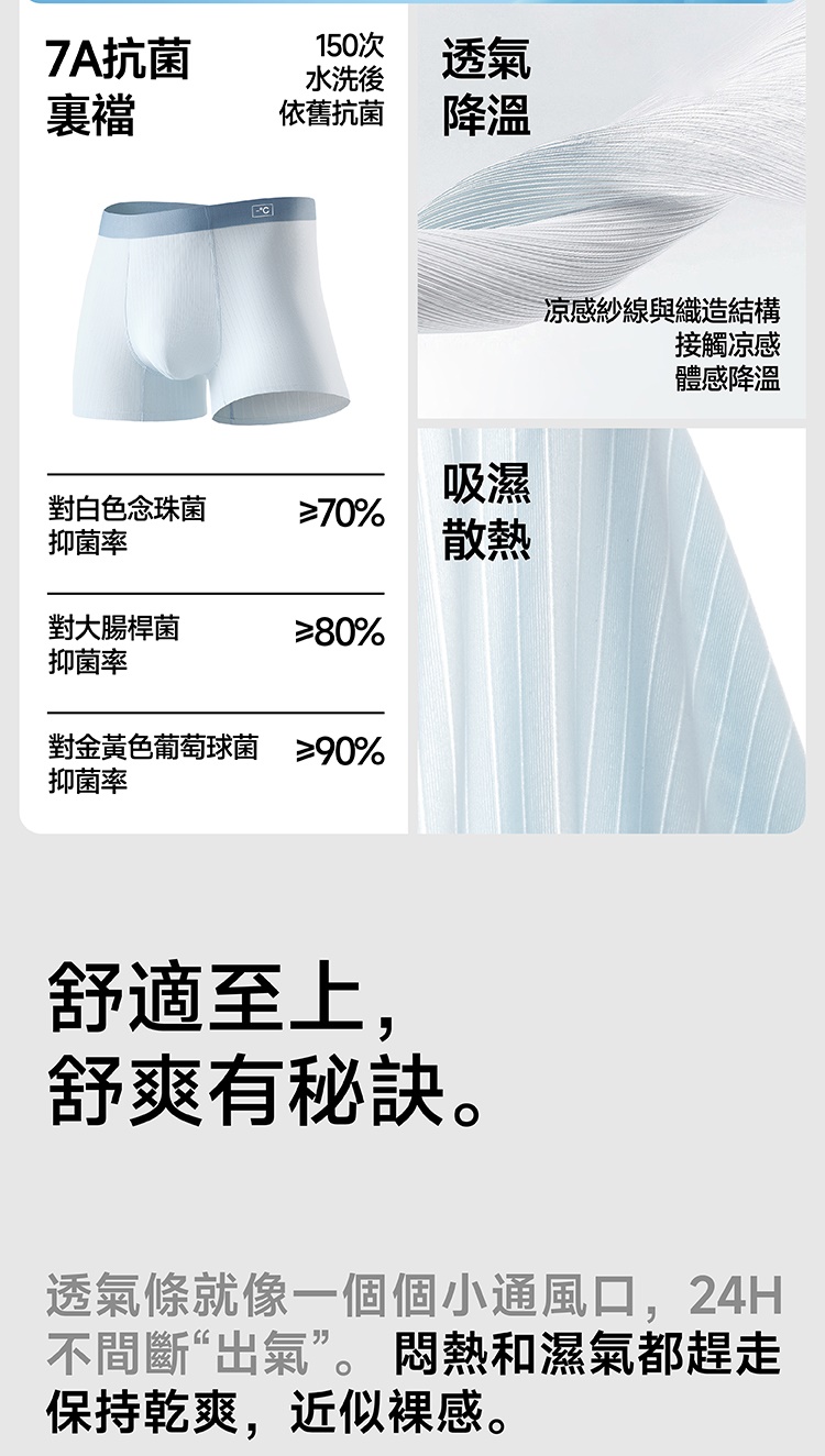 透氣條就像一個個小通風口,24H不間斷"出氣"悶熱和濕米都趕走保持乾爽,近似裸感。