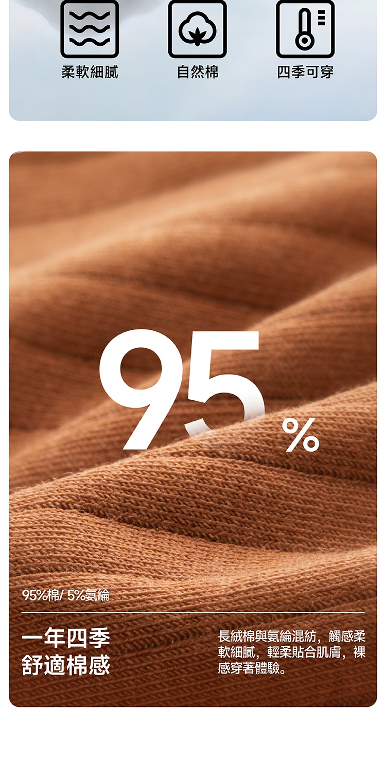 新疆長絨棉吸濕透氣,融合桑蠶絲的7A抗菌內檔,貼身一天不覺悶熱黏膩。